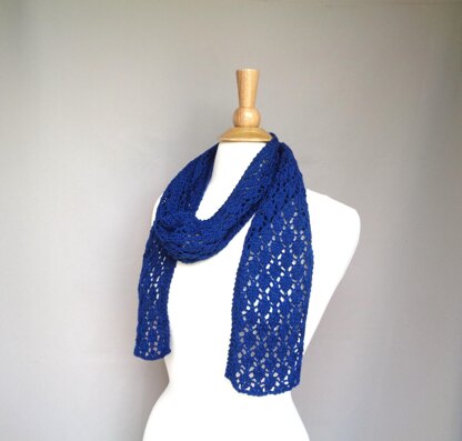 This breezy linen blend scarf has a pretty diamond design. A lovely wrapping scarf for light warmth or a pretty accent on a summer day.