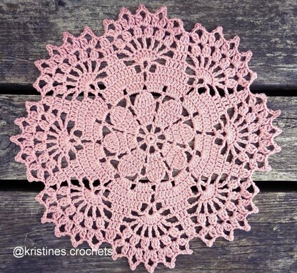 The doily measures approx. 32 cm (12,6 in) in diameter.