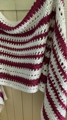 Blushing Beauty Rectangle Shawl Crochet Pattern tailored for beginners. The fuchsia really pops with the white rows.