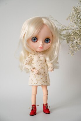 This 5 page pattern includes instructions with of 13 photos references to instruct you on how to knitted Dress for Blythe doll step by step.