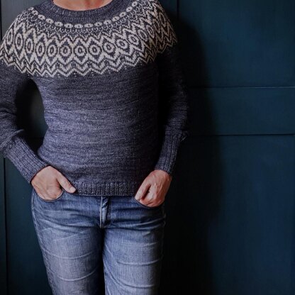 The pattern is suitable for a first stranded colourwork garment.