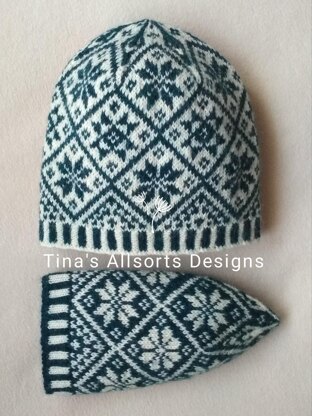 I designed them to be made with two highly contrasting colours but they would look good with multiple colours as well. I used Drops Nord and needed approx 26g of the background colour and 20g of contrast. A 50g ball of each will make two hats in opposite colours.