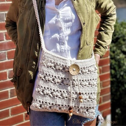 Crochet the perfect summer accessory with the Boardwalk Crossbody Bag pattern! This stylish crochet summer bag features beautiful shell stitches for texture and charm. The sturdy strap and wooden button closure with beads give it that trendy crochet boho bag look.