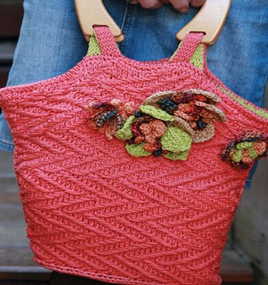 A stylish bag big enough to stash your necessities, and your knitting. Try this charming bucket bag. Zig and zag through the slip stitch pattern in the round then double-knit an extra-firm bottom and handle tabs following clear directions. A contrasting color is used for the inside facing that adds color punch while it conceals the handle tabs for a polished look. Finish with your own embellishments for a Boardwalk Bag that's all you.