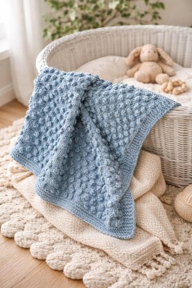 Designed using Debbie Bliss Dulcie yarn, this blanket features a neat garter stitch border and a repeating bobble motif. It's a relaxing project with a polished result—ideal for baby showers, gifts, or cozy home décor.