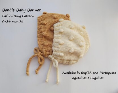 The bonnet includes two versions: one knitted flat and other knitted in the round.