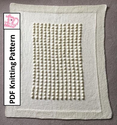 This simple to knit baby blanket features a fabulous textured central motif of knitted bobbles on a stocking stitch background with a moss stitch border.