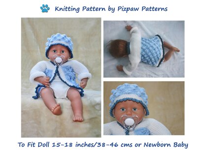 This is a digital download knitting pattern delivered directly to your device. Knit our Bobble Cardigan and Hat suitable to fit a 15-18 inch/38-46 cms doll or a newborn baby.