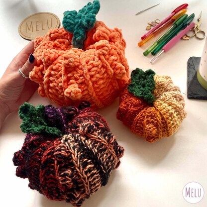 Elevate your Halloween festivities with cozy charm as you introduce these adorable Bobble Pumpkins into your collection of spooky decorations. Let your imagination run wild as you play with colors, textures, and sizes for your crochet pumpkins. But why stop at decorations? Let the crochet magic spread to your Halloween gatherings! Imagine crochet pumpkins gracing your table, adding a special touch to your dinner or party. Craft some smaller pumpkins that can also work as adorable placeholders, or arrange them down the middle of your table, blending them with black candles and faux cobwebs and spiders for a truly spine-tingling scene.