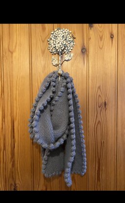 A long cosy garter stitch scarf knitted from the centre out and finished with a bobble cast off.