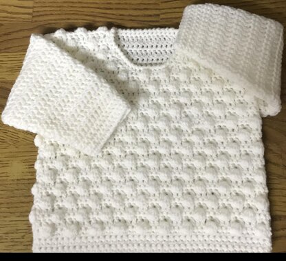 This pattern is for a bobble round neck sweater for a baby or child. There are two variations for the back of this sweater, one plain and one with a full bobble pattern which matches the front. You may like to use the full bobble back for the older child and the plain version for the younger or why not make two, one of each. Please note that by making the back with the full bobble pattern you may use more yarn, so do please bear this in mind if choosing this version.