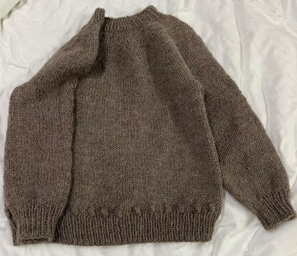 The neck is worked in the round with circular needle, from mid back and top down. Then divided for body and sleeves and the body is continued in the round with circular needle. The sleeves are worked with double pointed needles , or short needle , top down .