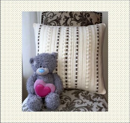 • Makes an 18” Cover for a 20” Cushion Insert • Full photo tutorials included for advanced stitches • 12-page PDF with full support available • 650yds #4 weight / Worsted / Aran yarn used • Also full symbol chart included
