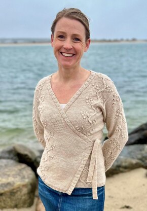 This is a light and airy bottom up wrap cardigan, perfect for Spring. The ultra soft alpaca-merino blend yarn was created to be worn against your skin, ideal for summer evenings and sleeveless dresses. The length is variable and the sizing is adjustable depending on how tightly you wrap it.