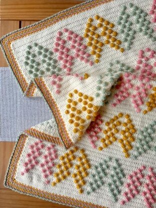 Full of contrasting bobbles in a cute chevron design, the Bobbles Up blanket works up quickly. A moss stitch border complements the bobble stitches and adds an extra layer of cosiness.