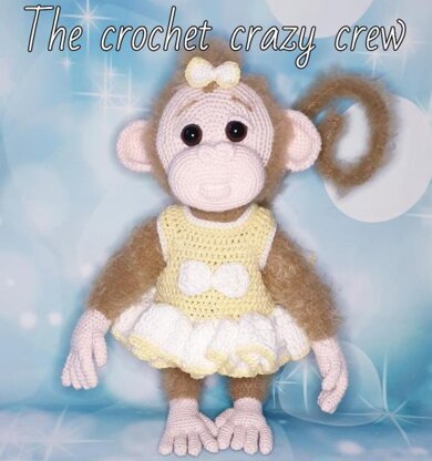 We would like to introduce to you 'Bo-Bo The Monkey', she's made in (8ply) fluffy DK yarn, is written in US Terminology, is worked in basic stitches and rounds and stands at approximately 14" in height.