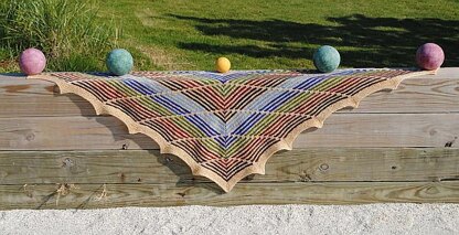 Inspired by a woven hat, Bocce’s design reinterprets the weaving pattern with slip stitches for the warp threads and stripes for the weft threads. Starting with a garter stitch tab, two-row stripes are broken up by blocks of three slipped stitches. Six stitches are added on every right side row causing the shawl to grow more quickly in width than in depth. Instructions include two border options - plain or with points. Bocce can be knit with as many as ten contrast colors or as few as one, making it great for stash busting. You have lots of options to customize Bocce and make it uniquely your own.