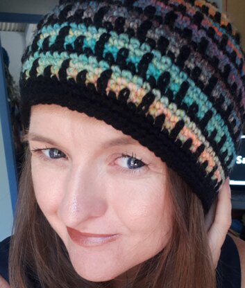 A simple yet attractive pattern worked in a minimum of two colors. Loops pulled up and worked across previous rows create a seismic wave-like pattern. For best effect, use contrasting colors or match a solid color with a color-changing yarn.