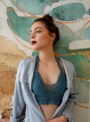 Tools: Crochet hook 3 mm (metric), US / (option: D/3), UK 11; tapestry needle for weaving ends. Materials: 160 meters / 175 yards of DK cotton yarn if made in one color Difficulty: intermediate Used terms in American terminology: chain (ch), slip stitch (sl st), skip (sk), single crochet (sc), half double crochet (hdc), double crochet (dc), picot. Finished measurements: Size S: bra cup center down (lace included): 22 cm / 8.7” Across chest: 32 cm / 12.6” Lace underbust: 34 cm /13.4” Size M: bra cup center down (lace included): 23 cm / 9” Across chest: 38 cm / 15” Lace underbust: 42 cm /16.5” Gauge: the gauge is calculated for the center part of the bra cup where 10 dc st. are made in in 7 cm / 2.75”. There are photos accompanying the pattern which makes it easy to work on this lovely bralette.