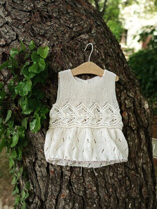Once the top is knitted, pick up sts for the skirt. Increase sts for the flounce and work in the round until completing desired length.