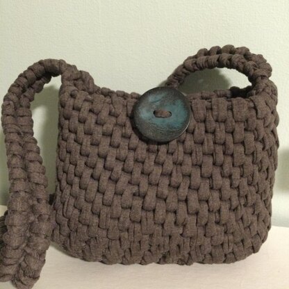 - Project uses flat yarn (ribbon, fettucine, spaghetti, tape, tshirt or other flat fabric yarn & a double-ended crochet hook. Button or toggle optional.