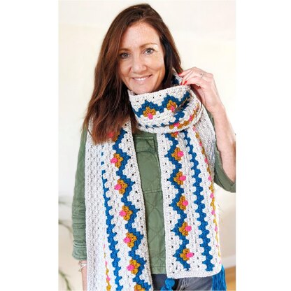 This granny stitch scarf is worked lengthways in DK weight yarn and includes instructions on adjusting width and length. Available in UK & US crochet terms. Step photos and charts included.