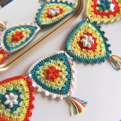 You can use this pattern with any weight of yarn you choose, just make sure you are using the recommended hook size for your yarn. Please keep in mind that using different yarn weights means the overall length of the garland, the size of each flag, and the meterage/yardage needed will vary.