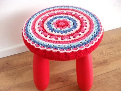 This gorgeous stool cover will fit perfect in any girls room: all those beautiful colors make your little princes feels happy. The crochet stitches used in this pattern are very simple but the combination of different colors and mixed stitches makes it so beautiful. I made it for Mammut stool from Ikea but you can use it for any other round stool. This pattern could also be used for a pillow cover or a mandala.