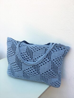 Crochet market bag for the beach or for yarn shopping. Filet crochet is very satisfying and a bit addictive. The pattern har written instructions for the bottom of the bag and the handles and a chart for the pattern. I also included an introduction to filet crochet, so do not despair if you haven't tried it before.