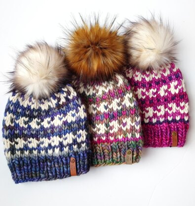 The Bold Coast Beanie, which matches the Bold Coast Cowl, was inspired by my love for the bold rocky coast of Maine. Certain colorwork sections of this pattern remind me of the waves that crash upon the rocky granite shores.