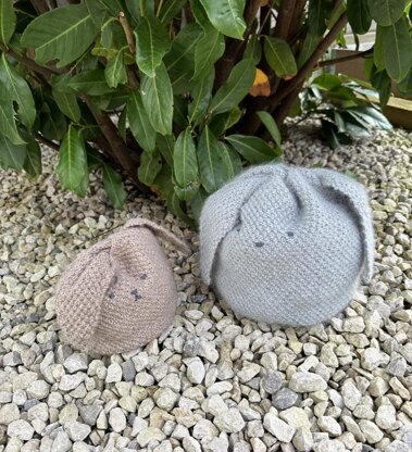 The Bonny Bunny Bags are worked in the round from the bottom up with the ears worked flat.