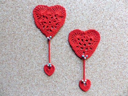 Two different patterns for highly personalized bookmarks. They were designed by Oito Crochet for Valentine's Day but they will allow you to show, all year round, your love or tenderness to someone you care about. Red, the color of lovers, can therefore be replaced by the favorite color of the person who will receive it. These bookmarks are not very difficult to make, they just require regular work. The PDF includes a main diagram and 6 detail diagrams as well as a step-by-step explanation with 39 photos.