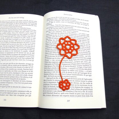 A bookmark that's quick to make (less than 2 hours, without blocking) and easy for intermediate crocheters. The stitches used are only chains, slip stitches and single crochets. This is therefore an ideal and original gift idea. You need to work it tightly to make it compact. If you're crocheting rather broadly, it's best to use a hook one size smaller (1.25 mm). To obtain a regular shape, it is essential to block the work when it is finished (tense and moisten). The PDF explanation includes 5 pages with 13 simple diagrams, including 1 main one and 12 detail ones, as well as 19 photos showing step-by-step progress.