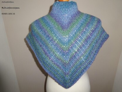 Petit châle tricoté en au point jersey; vous pouvez changer de mesures selon vos envies, en partant du plus petis chauffe-col jusqu’au plus grand châle.