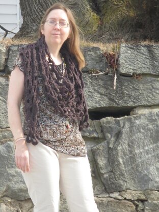 The Boomerang Shawl is my latest shawl design. It is constructed from the top down, starting with a long chain, and is written for one size only using the amazing Made In America Florafil Worsted yarn (97% cotton, 3% nylon; 3.5 ounces/100 grams, approximately 200 yards/183 meters; color Chocolate Lily, 2 skeins).
