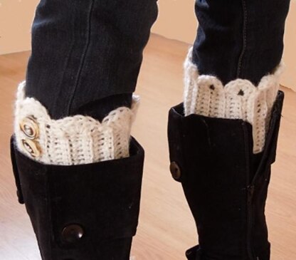 Each finished boot cuff measures approximately 10" (25.5 cm) around but they have plenty of stretch so they will fit many sizes. The boot cuff length is approximately 4½" (11.5 cm) from the lower edge to the top of the scalloped edge.