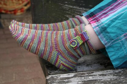 This is a pattern for a pair of Boot Strap Socks. The socks come with a chart to make small to large sizes depending on your foot size. They are knitting using 4ply sock wool (I've used Beaker Button Bountiful 4ply in the example). They are toe up socks knitted on 4 double pointed needles.