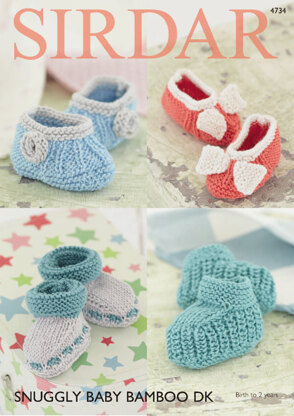 Bootees and Shoes in Sirdar Snuggly Baby Bamboo DK - 4734 - Downloadable PDF