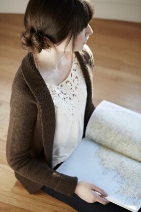 The pictured sweater is knitted seamless from the top down. If you prefer seamed knits, a second set of instructions is included to knit the cardigan in pieces. This will yield the same result. For more on why you might choose one construction method over the other, see page 40 of Home & Away!
