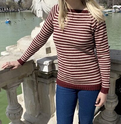 Here is a gorgeous chic sweater I designed in a striped stocking stitch pattern with a Merino yarn.