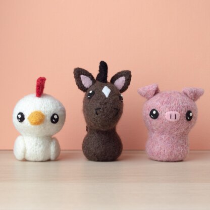 Knit and felt a chicken, pig and horse! Easy-to-follow full-color pattern includes diagrams and detailed instructions to felt and finish one project in under two hours.Requires use of 100% wool yarn that is NOT labeled "superwash."