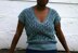 This is The Boss. A commanding, yet intriguing open gauge lace top, with V-neck and integral short sleeves. It is knitted flat in 2 pieces (front and back) from the bottom up, then seamed together. The hemline, the neck line and sleeve ribbings are picked up, then worked in the round using circular needles.