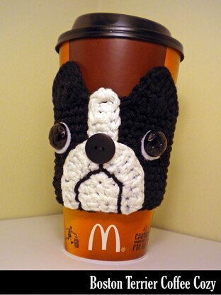 These adorable Boston Terrier coffee cozies make great gifts and stocking stuffers for all of your puppy-loving friends and barely use any yarn. Make one for everybody you know! Keeps your iced coffee cool and your hot coffee hot! Plus... they are Earth-friendly since they are re-useable!