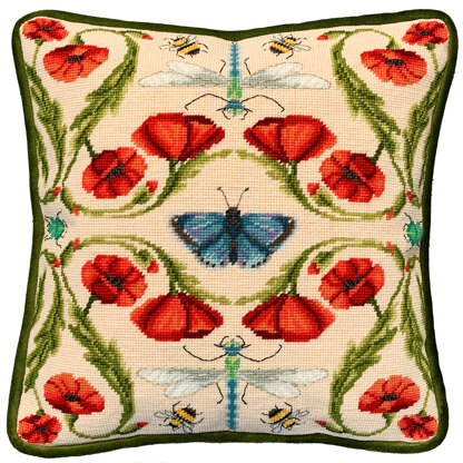 This woollen tapestry kit is worked on 12 count full colour printed Zweigart interlock canvas using Appletons 100% pure English tapestry wools. The kit also includes a needle and a clear stitch diagarm and instructions. The finished design size is 14 inches square. Cushion backing and pad are not included. This design is based on original artwork by Catherine Rowe and was first released on the 17th October 2023 as part of the Bothy Threads 2023 Autumn Collection.