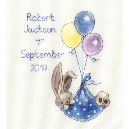 This cute Bebunni design is brought to you in cross stitch by Bothy Threads. Featuring a sweet little baby bunny being transported in a handkerchief hammock and balloons. The finished project would make an ideal gift for a newborn baby. Your kit contains: 14 count white Zweigart Aida, pre-sorted stranded cotton, needle, stitch diagram and instructions. Finished size 20 x 22cmThis kit uses full cross stitch, occasional fractionals, and back stitch. Threads are provided to work the design in either blue or pink.