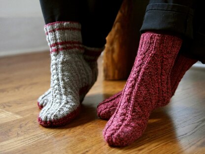 These quick to knit booties are lots of fun to work in one color or two—just the motivation you need when a gifting deadline is on the horizon. Constructed in the round from the bottom up on two circular needles with several top cuff options, short row shaping combined with decreases ensures a snug, seamless fit. The pattern includes three sizes (S/M/L) to knit in worsted weight yarn that stretch to fit a wide range of feet and may be customized by adjusting needles up or down. These warm slippers are just what’s needed after a long day of outdoor winter activity; they also work well as boot liners. Hug the feet you love best by knitting up a cozy pair.