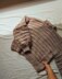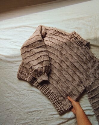 This sweater is a cute little cropped, mock neck jumper with balloon sleeves. It is knit bottom-up, in the round before being split and worked flat from the underarms. The shoulders are then bound off using a 3 needle bind-off to create a seamless body piece. The sleeves are then picked up and also knit in the round.
