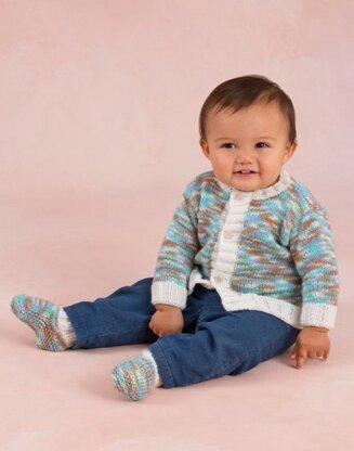Bouncing Boy Cardigan and Booties in Red Heart Anne Geddes Baby - LW3349