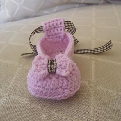 Ribbons and bows adorn these sweet little ballet flats. Ankle ties helps keep these shoes securely on active little feet.