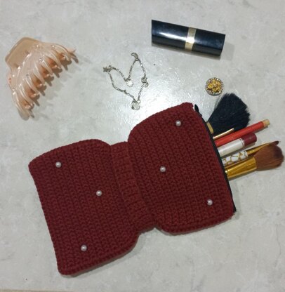 This bow case is a crochet pattern that can be used as a pencil case for cute little girls or as a makeup bag for makeup brushes. It is a cute, easy and quick project to make and perfect to give as a gift. I decided to keep this pattern simple and easy for beginners to understand so I worked the front and back panels the same and then seam them together using single crochet.